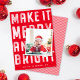This design features a large modern "make it merry" with a single square photo. The square size of the photo is a great opportunity to use your social media photos. The background is festive red but can be customized with any colour.