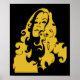 Hippie chick from Vietnam War era, with wavy blonde hair, says Make Love Not War.