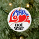 Christmas tree ornament with Make Love Not War.