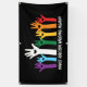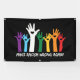 Colourful anti-racism design features a "rainbow" of hands with heart cutouts and white "make racism wrong again" text.