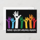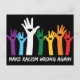 Colourful anti-racism design features a "rainbow" of hands with heart cutouts and white "make racism wrong again" text.