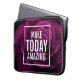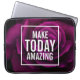 A laptop sleeve with the inspirational text: make today amazing. Designed with a photograph of a mysterious purple-pink gothic rose.