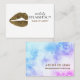 Elegant matte paper professional square business card golden lips drawing. Elegant back with colourful marble texture. Easy to personalize it.