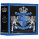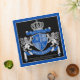 Create your very own aristocratic Coat of Arms, Emblem, Insignia or Family Crest with this beautiful, classic escutcheon or shield design. Cobalt Blue patterns decorate a shield topped with silver crown and flanked by medieval heraldic lion or griffin. A matching top banner holds your custom wedding date / birth date / slogan or battle cry. The shield has space for your monogram initials. Bottom banner carries your family name. There is also space below for your favourite quote, motto or message. Replace the sample text with your own for a personalized gift. A gender neutral design that will work for families, groups, couples or individuals. Makes a wonderful gift for Wedding, Anniversary, Birthday, Retirement, Promotion, Father’s Day, Bachelor Party, Wedding Shower, Graduation, International Heraldry Day, Medieval or Fantasy-themed parties and other special occasions.