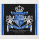 Create your very own aristocratic Coat of Arms, Emblem, Insignia or Family Crest with this beautiful, classic escutcheon or shield design. Cobalt Blue patterns decorate a shield topped with silver crown and flanked by medieval heraldic lion or griffin. A matching top banner holds your custom wedding date / birth date / slogan or battle cry. The shield has space for your monogram initials. Bottom banner carries your family name. There is also space below for your favourite quote, motto or message. Replace the sample text with your own for a personalized gift. A gender neutral design that will work for families, groups, couples or individuals. Makes a wonderful gift for Wedding, Anniversary, Birthday, Retirement, Promotion, Father’s Day, Bachelor Party, Wedding Shower, Graduation, International Heraldry Day, Medieval or Fantasy-themed parties and other special occasions.