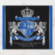 Create your very own aristocratic Coat of Arms, Emblem, Insignia or Family Crest with this beautiful, classic escutcheon or shield design. Cobalt Blue patterns decorate a shield topped with silver crown and flanked by medieval heraldic lion or griffin. A matching top banner holds your custom wedding date / birth date / slogan or battle cry. The shield has space for your monogram initials. Bottom banner carries your family name. There is also space below for your favourite quote, motto or message. Replace the sample text with your own for a personalized gift. A gender neutral design that will work for families, groups, couples or individuals. Makes a wonderful gift for Wedding, Anniversary, Birthday, Retirement, Promotion, Father’s Day, Bachelor Party, Wedding Shower, Graduation, International Heraldry Day, Medieval or Fantasy-themed parties and other special occasions.