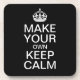 Make your own Keep Calm and Carry On coasters using our easy to customize template. All text can be changed, re-sized, moved or deleted. The background colour can be changed from black to any colour of your choice - match with your home decor.