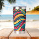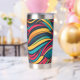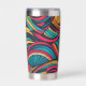 Make your own personalized abstract patterned name thermal tumbler from Ricaso - designed with a colourful fun patterned background in tones of pink, yellow and blue,
