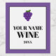 Make your own wine labels with purple grapes logo. Personalize bottles with your own text label. Great for Birthday, wedding party, business, wine tasting event, vineyard and more. Unique drinking gifts.