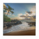 This photo features the beautiful sunset reflecting in the coastal tidal pools of Makena Cove, Maui. In the distant horizon you can see Kaho'olawe Island Reserve.