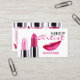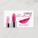 Makeup artist business card design with shiny pink lipsticks and ruby pink female lips over white background. This stylish profile card is perfect for beauticians, cosmetologists, hair and makeup beauty salons and other similar professions. If you need any help with this design, feel free to contact me.