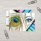 Makeup artist business card design with peacock feather, watercolor and pencil drawing of girl's eye and eye shadow palette on white background. This stylish profile card is perfect for trendy girls, beauticians, cosmetologists, hair and makeup beauty salons and other similar professions. If you need any help with this design, feel free to contact me.
