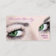 Makeup artist business cards with beautiful woman in the background and striking colour eyes, along with an easy text layout you can customize. Perfect for any business card themes related to beauty, cosmetologist, cosmetics, or beauty nail or hair salon and spa.