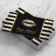 Makeup Artist Gold Lips Modern Black Gold Stripes Business Card
