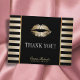 Makeup Artist Gold Lips Modern Black White Stripes Thank You Postcards.