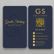 Makeup Artist Monogram Navy Blue Gold QR Code Business Card