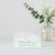 An elegant modern, stylish makeup artist business card with elegant modern simple hand lettering style typography on a pearl nacre iridescent holographic and pastel mint green trendy and elegant background. all text is customizable, add your social media.