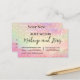 Modern and elegant makeup and hair Pastel holographic glitter rainbow with pink peach floral lace appointment reminder business card.