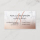 An elegant modern monogram , stylish makeup artist business card with elegant modern simple hand lettering style typography in white on a faux rose gold foil metallic andwhite marble trendy and elegant background. all text is customizable, add your social media.