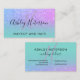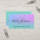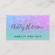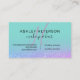 An elegant modern monogram , stylish makeup artist business card with elegant modern simple hand lettering style typography in white on a faux purple pink ombre glitter and turquoise trendy and elegant background. all text is customizable, add your social media.