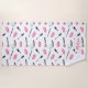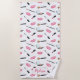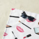 Destei's illustrated pattern of different kind of makeup products together with pink lips. These makeup products include lipstick, mascara, powder with a mirror and makeup brushes. There is also a personalizable text area for a name in pink colour.