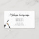 L'illustration amusante de Destei de divers produits de maquillage tels qu'un mascara, un rouge à lèvres, de la poudre avec miroir et une brosse à maquillage. Sur le devant on lit "maquillage artiste" en joli police de calligraphie et sur le derrière il y a des zones de texte personnalisables pour le nom, l'adresse et d'autres informations. Conçu pour les maquilleurs, les cosmétologues et les esthéticiennes en tête.