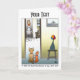 A card with a cute and funny cartoon about a cat telling a dog to make his owner beg for a change. The image, background and text can be personalized. Original artwork by DB Cartoons.