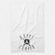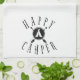 Our custom kitchen towel adorned with with the words "Happy Camper" in black and white. View our full line of products in our Zazzle store.