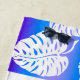 Purple and blue Colorway. Giant graphical tropical monstera leaves interplay with a beautiful striped blend of colours that are reminiscent of the Hawaiian landscape. There are other home decorating items in the same design. The pattern comes in several colorways.