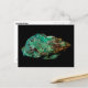 Photo of Malachite - a green mineral - on a Black Background. "Malachite" text on back in upper left corner.
