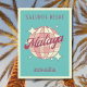 Malaga Spain Retro Vintage Design featuring a disco ball in pink, and apricot peach hues. This beautiful postcard is a perfect greeting card for Malaga residents, visitors, tourists or fans.