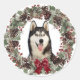 Malamute Dog Red Bow Pinecone Wreath Christmas Classic Round Sticker