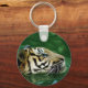 Stunning headshot of an Malayan tiger swimming in emerald water.