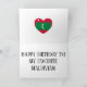 Beautiful design includes happy balloons and ticker tapes with the words "Happy Birthday", covered in the colours of the Maldives flag. Design is finished with the heart in the Maldives flag colours and the Birthday message. Elements are fully customizable using "Customize it!" feature. This colourful birthday card is the perfect present for your friend from Maldives. © CountriesOfTheWorld