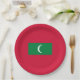 This design features the national flag of Maldives (officially known as the Republic of Maldives), which is an archipelagic state in the Indian subcontinent of Asia, located in the Indian Ocean. Maldives lies southwest of Sri Lanka and India, around 500 miles from the Asian continent's mainland. The chain of 26 atolls stretches from Ihavandhippolhu Atoll in the north to Addu Atoll in the south (across the Equator). Maldives is one of the world's most geographically dispersed sovereign states as well as the smallest Asian country by land area. The capital and largest city of Maldives is Malé, traditionally called the "King's Island" where the ancient royal dynasties ruled because of its central location.