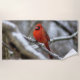 A bright red Cardinal adds a pop of colour on a dreary snowy day.