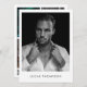 A customized modern male modelling / actor comp card with 5 photo, QR code and your text. Customize the text, photos and QR code and make it your own.