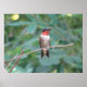 Poster features a photograph of a male Ruby throated Hummingbird with a brilliant red throat.