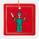 This ornament features a humourous male surgeon with some wild surgical tools. On the back is a smaller version of him in scrubs with no tools. The back of the ornament can be personalized with a NAME and the YEAR that you want. This makes a great gift for anyone in the family who is a doctor to be represented on the Christmas tree, or just for your favourite doctor as a gift from you. Due to the design style, this can only be purchased on SQUARE ornaments. Designed by Sheila Cicchi, Brownielocks.com. All Rights Reserved.