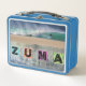 Bleu rétro, boîte à déjeuner métallique avec emblème Zuma Beach et surfer