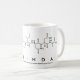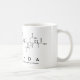 Malinda spelled out in amino acids as M A L I N D A (Methionine Alanine Leucine Isoleucine Asparagine Aspartic acid Alanine) on a mug for the scientist in you.