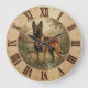 A wooden wall clock featuring a confident Malinois dog in a natural garden setting.
