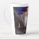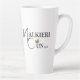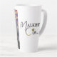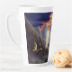 Tall latte mug with MalkieriCon logo and painting of The Golden Crane Flies.
