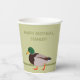Add your own message to create custom party supplies for birthday parties and other special events. These paper cups feature a realistic style illustration of a male mallard duck set against a pale green background with your text in olive green coloured lettering.