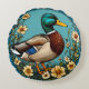 Illustration showcases a beautiful mallard duck in a ring of bright blossoms, emphasizing nature and wildlife.
