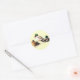 Three mallard ducks are sitting on this sticker. The two males have iridescent green heads, mostly white bodies and yellow beaks. The female's feathers are shades of brown and gold and her beak is orange.