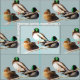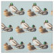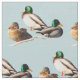 This animal fabric features a repeating pattern of three mallard ducks. The males have iridescent green heads, white bodies and yellow beaks. The female's feathers are brown and gold with an orange beak. They are such pretty water birds! Easily customize the pale blue background colour to the one that will best suit your special project.