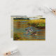 Male and female mallard ducks in flight over a golden pond, water rippling to reflect the colours of the background autumn foliage glowing in the sunlight. Realistic artwork created from an original oil painting by wildlife artist Crista S. Forest.
