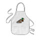 This apron is made with a durable fabric! My grandson LOVES it! The shape provides great coverage to protect clothes from paint spatters, etc. The print quality is excellent! The detailed lines of the dragon drawings are printed in a crisp, clean manner.