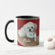 The image on this product displays a cute little Malshi. A Malshi is a designer dog -- a cross between the Maltese and Shih Tzu dog breed. Very sweet, mellow and tolerant, Malshis are great companion dogs and lots of fun to have around. They love to cuddle, fetch balls and play chase. While they are great protectors of their owners, they also are very social and get along well with everyone, dogs or humans.
